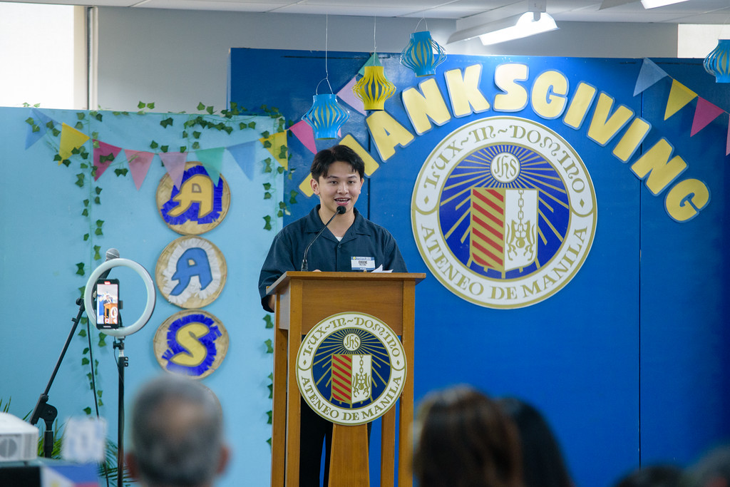 After prayer, Eugene dela Cruz (4-AB Economics Honors) started the program expressing his gratitude for making it to the Ateneo despite all odds.  He acknowledged how the opportunities brought by his AASA scholarship helped him grow and thrive as a student, and gave him and the other scholars confidence and hope to face the future. (Click here to see the Opening Speech)